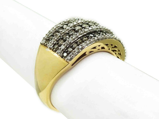 2ct tw Natural Chocolate & Vanilla Diamond Row Filigree Ring 14k Gold Size 6