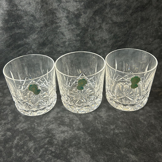 3 Waterford Crystal LISMORE 3 1/2” Single Whiskey Old Fashioned Tumblers 9oz