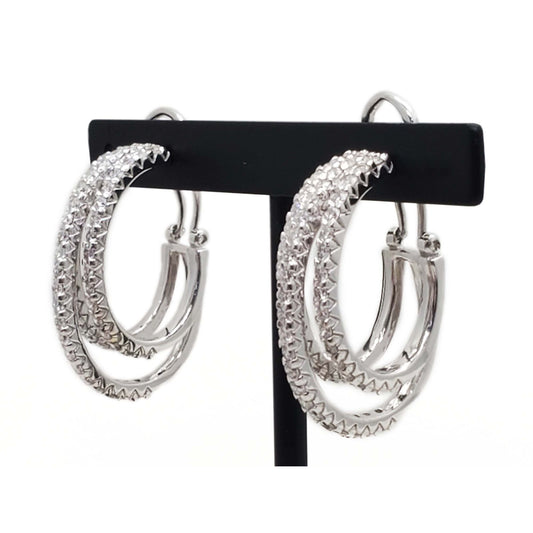3.1 ctw Natural Diamond 3-Row J Style Omega Hoop Earrings 14k White Gold