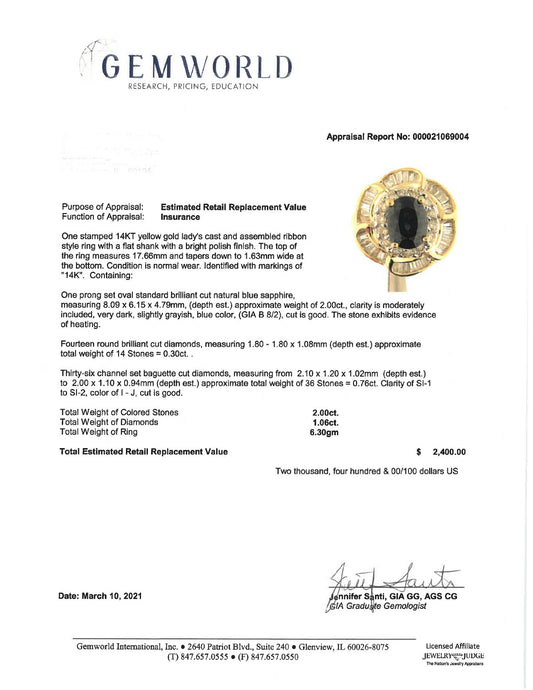 3.06ctw Natural Sapphire & Diamond Ribbon Ring 14k Gold Size 4.5