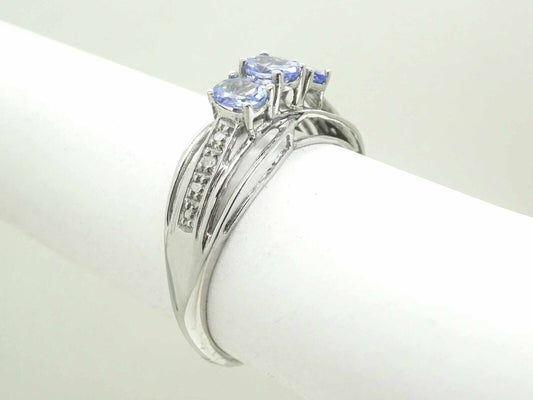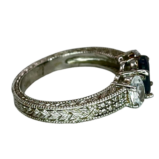 3-Stone Oval Sapphire & CZ Silver Tone Ring Size 8.25