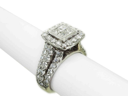 3.03ct tw Princess & Round Natural Diamond Cluster Ring 14k White Gold Size 5.75