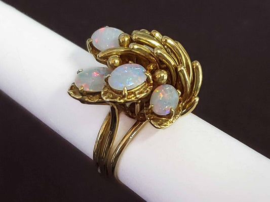 3.50ct tw Fire Opal Oval Floral Design Cocktail Ring 18k Gold Size 5.25
