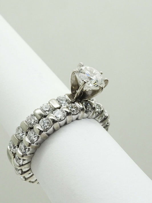 3.00ct tw Earth Mined Diamond Engagement Ring Set 14k White Gold Size 6.5