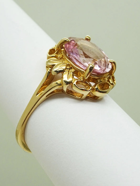 3.5ct Natural Pink Tourmaline Flower Filigree Ring 14k Gold Size 10