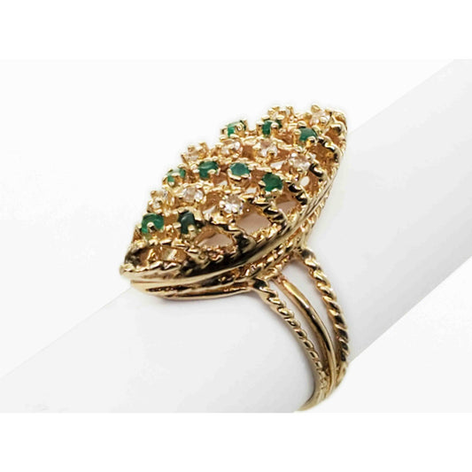 0.54 ctw Natural Emerald & Diamond Navette Setting Gold Ring 14k Gold Size 6