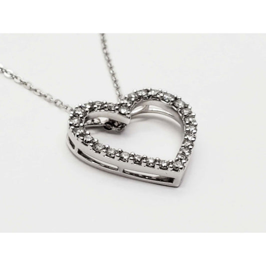 0.50 ctw Natural Diamond Open Heart Pendant Necklace 14k White Gold w/IGI Report