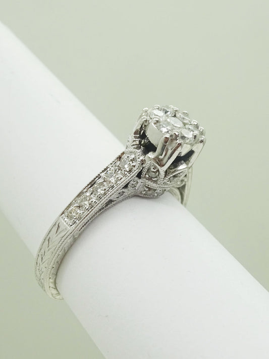 0.50ct tw Ladies Diamond Flower Cluster Engagement Ring 14k White Gold Size 5.75