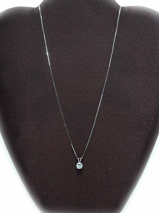 0.50ct Solitaire Round Natural Diamond 14k WG Charm Pendant on 10k WG Box Chain