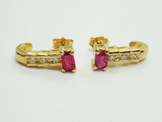 0.4ct tw Natural Ruby & Diamond J-Shaped Earrings 14k Gold