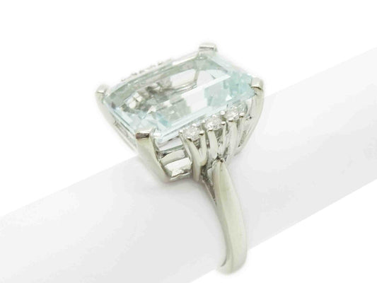 9.57ct tw Natural Aquamarine & Diamond Accent Ring 14k White Gold Size 6.25