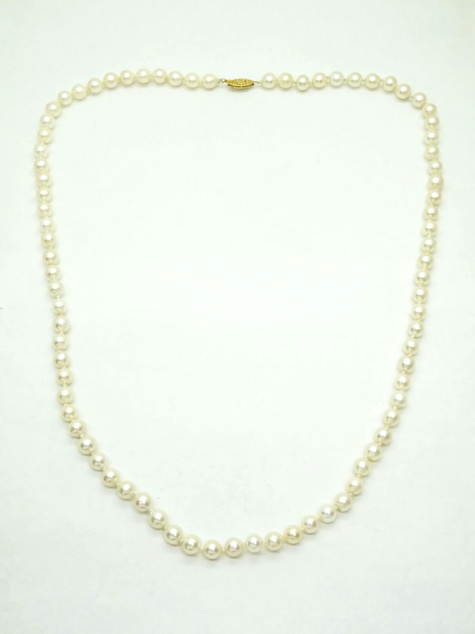 8mm Natural Pearl Bead Necklace 28" Opera Length 14k Gold Clasp