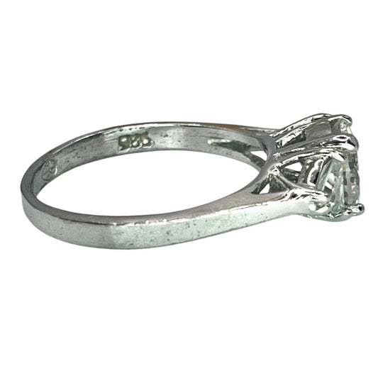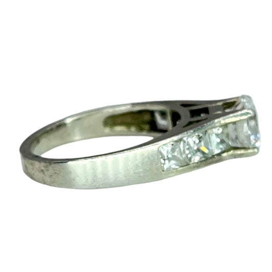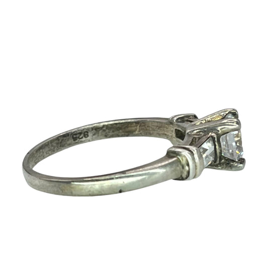 925 Silver Princess Cut Prong Setting 3 Stone CZ Ring Sz 6.75 Engagement Bridal