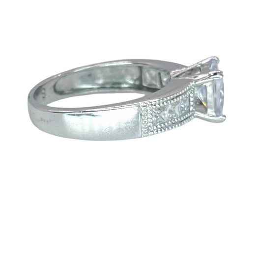 925 Silver Princess Cut Prong Setting CZ Ring Sz 8.25 Engagement Bridal