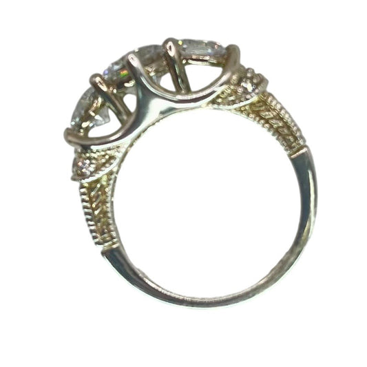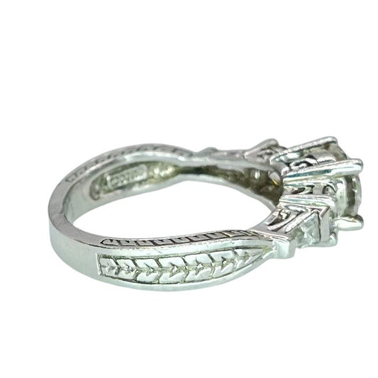 925 Silver Round Cut Three Stone CZ Ring Size 7 Engagement Bridal Intricate