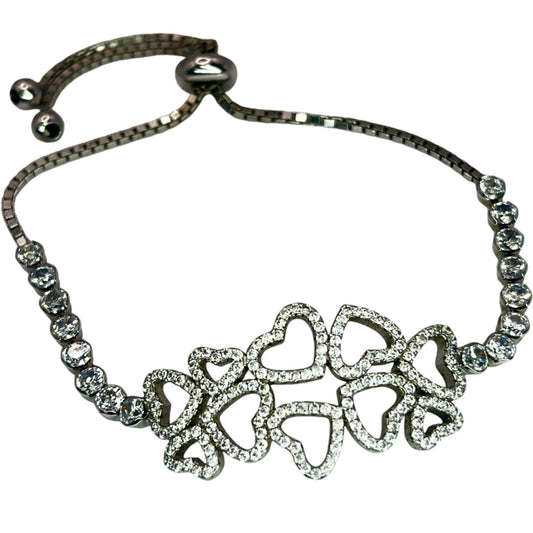 925 Silver Open Heart Cubic Zirconia Adjustable Bolo Bracelet Love Classic
