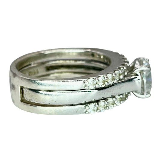 925 Silver Round Cut CZ Ring Size 6.75 Engagement Wedding Illusion Three Band