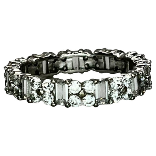 925 Sterling Silver Cubic Zirconia Rhodium Sz 8 Ring Eternity Band Classic