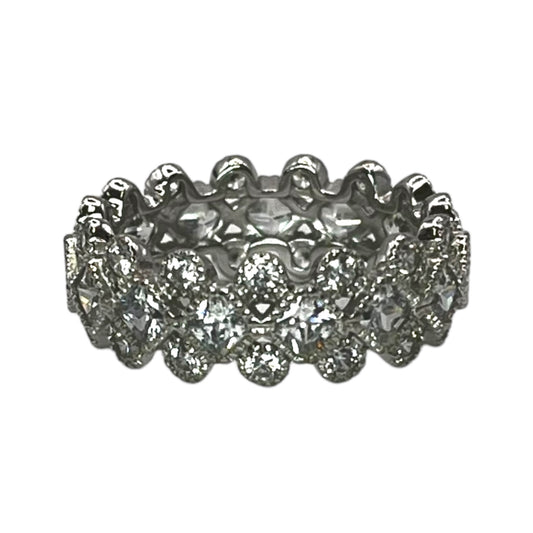 925 Sterling Silver Cubic Zirconia Rhodium Size 9 Ring Eternity Band Floral