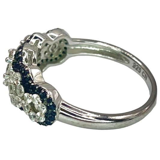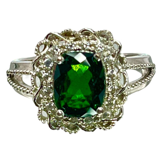 925 Sterling Silver Chrome Diopside Ring Sz 7.75 Cubic Zirconia Ornate Statement