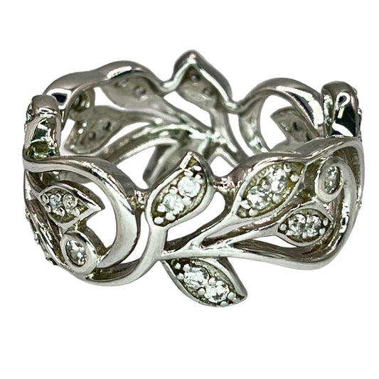 925 Sterling Silver CZ Accent Vine Floral Eternity Band Sz 9.75 Ring Boho Earthy