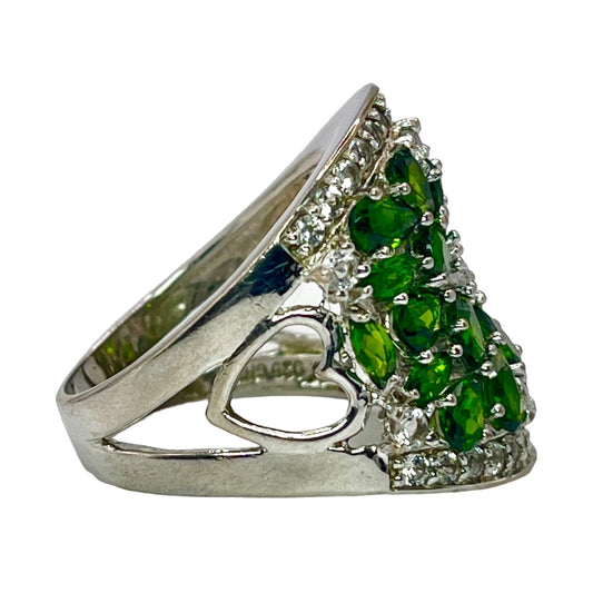925 Sterling Silver Chrome Diopside CZ Accent Large Cocktail Statement Sz 8 Ring