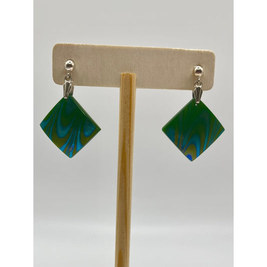 925 Sterling Silver Eye of Saint Lucia Square Dangle Drop Womens Earrings