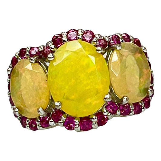 925 Sterling Silver Ethiopian Opal Pink Tourmaline Size 8 Ring 3 Stone Colorful