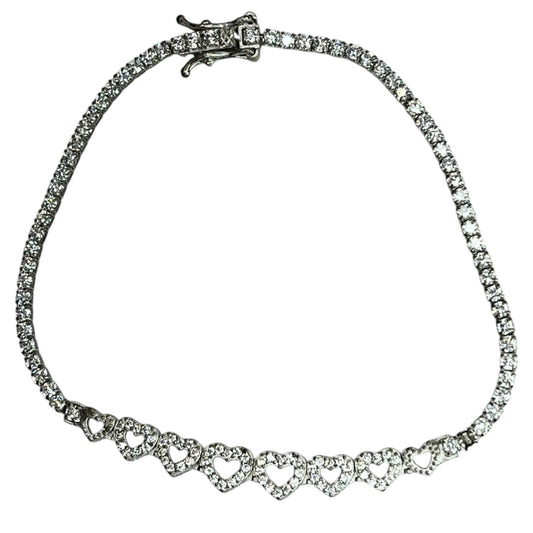 925 Sterling Silver FAS Heart Cubic Zirconia Tennis Bracelet Love Classic