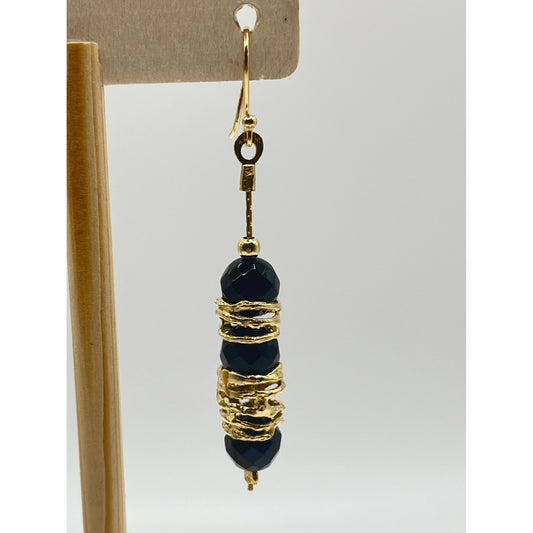 925 Sterling Silver Gold Layered Black Beaded Gold Wrap Dangle Earrings Formal