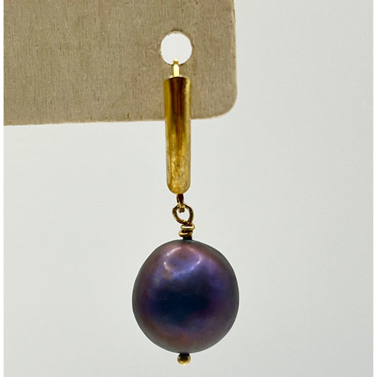 925 Sterling Silver Gold Layered Faux Peacock Pearl Dangle Drop Earrings