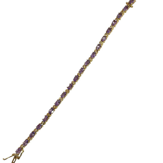 925 Sterling Silver Gold Vermeil Natural Oval Amethyst Tennis Bracelet Formal