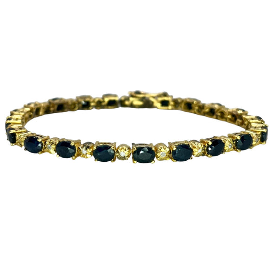 925 Sterling Silver Gold Vermeil Natural Oval Sapphire Tennis Bracelet Formal