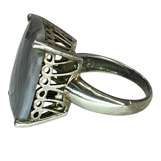 925 Sterling Silver Grey Purple Stone Chunky Rectangle Ring Size 7