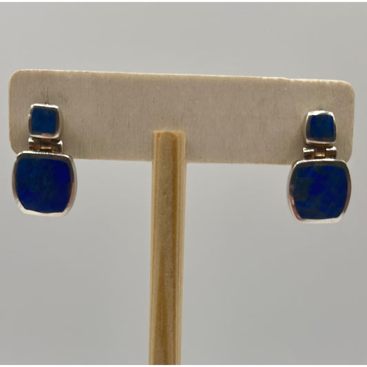 925 Sterling Silver Lapis Lazuli Drop Stud Earrings Blue Statement Southwestern