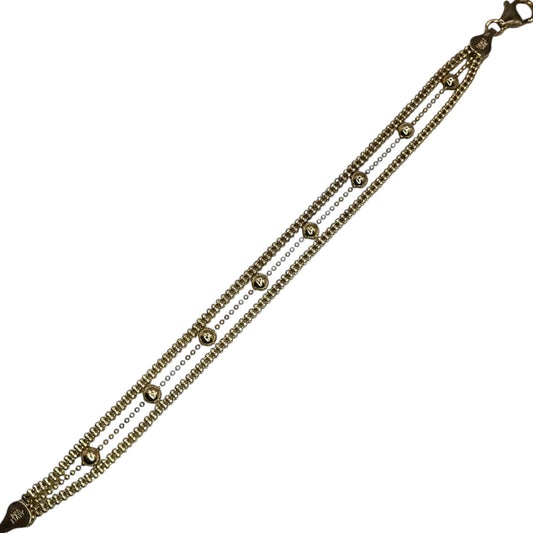 925 Sterling Silver Gold Layered Three Strand Bracelet Stackable Ball Beaded