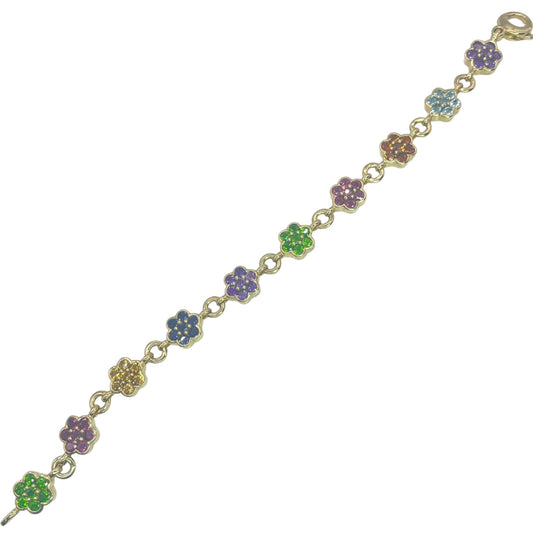 925 Sterling Silver Gold Layered Rainbow Flower Cubic Zirconia Bracelet Colorful