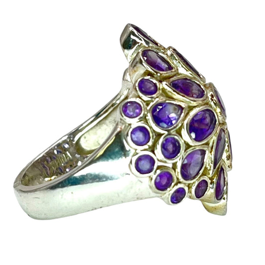925 Sterling Silver Natural Amethyst Cluster Ring size 7 Purple Chunky Statement