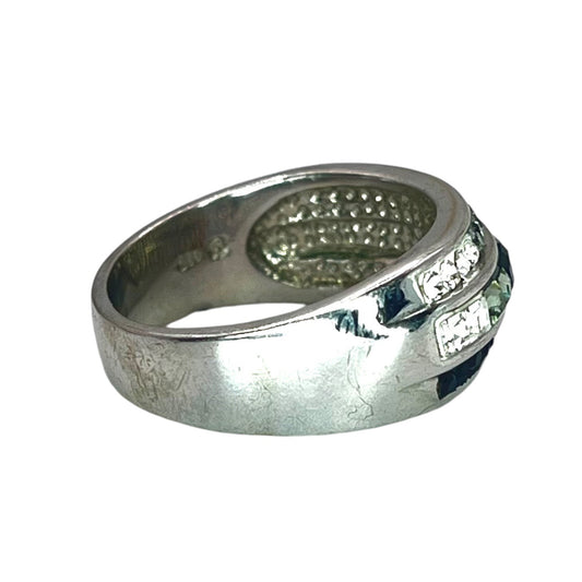 925 Sterling Silver Multi Row Band Ring Size 8.75 CZ Rhinestone Classic Casual