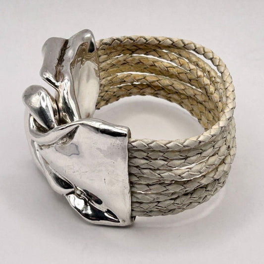 925 Sterling Silver Magnetic Clasp 8.75" Leather Bracelet Israel 47.4g