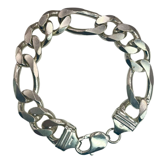 925 Sterling Silver Men's Figaro Chain Bracelet 8 Inch 13mm Classic Chunky