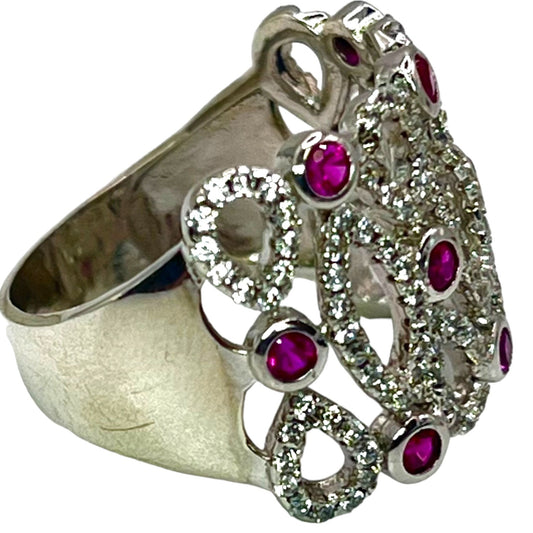925 Sterling Silver Pink Tourmaline CZ Filigree Statement Size 6.75 Ring