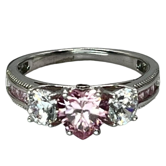 925 Sterling Silver Pink White CZ Rhodium Heart Sz 8.25 Ring Love Valentines