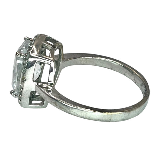 925 Sterling Silver Oval Cut Halo CZ Ring Size 7 Prong Set Engagement Bridal