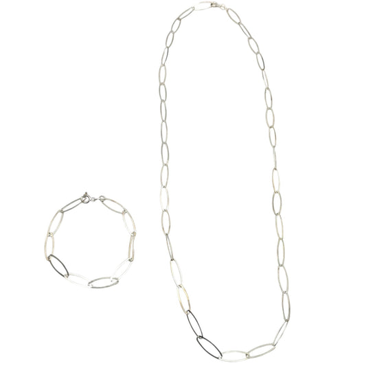 925 Sterling Silver Paperclip Chain Necklace Bracelet Set Classic Casual