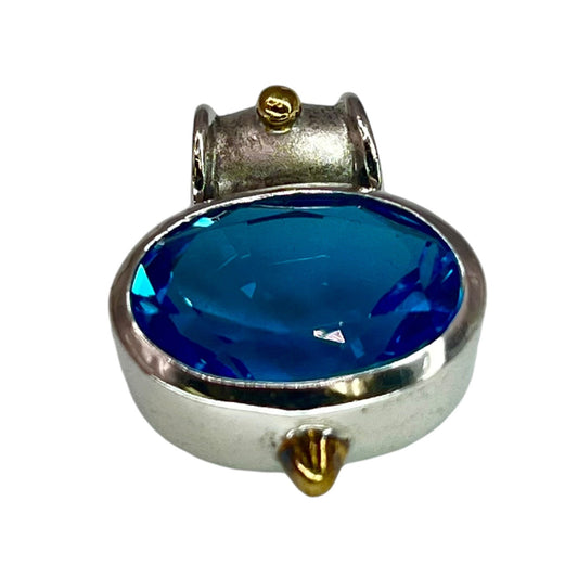 925 Sterling Silver Oval Blue CZ Two Tone Necklace Pendant Charm Colorful