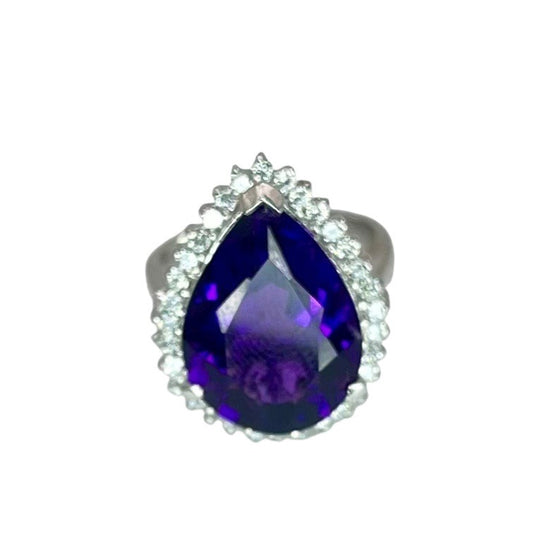 925 Sterling Silver Pear Teardrop Purple Amethyst Clear CZ Ring Size 3 Formal