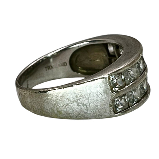 925 Sterling Silver Princess Cubic Zirconia Two Row Ring Size 6.5 Band Classic