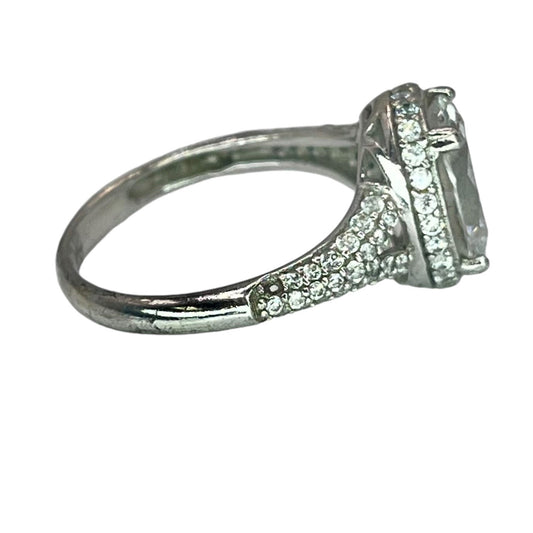 925 Sterling Silver Oval Cut Rectangle Halo CZ Ring Size 7 Engagement Bridal