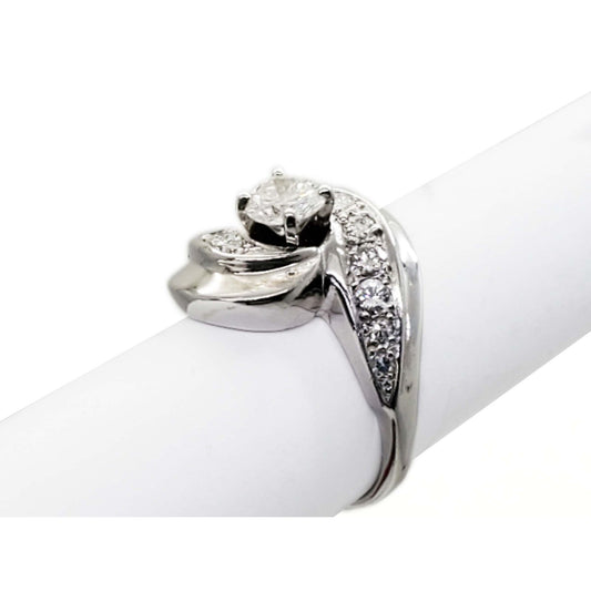 0.72 ctw Natural Diamond Swirl Bypass Style Ring 14k White Gold Size 5